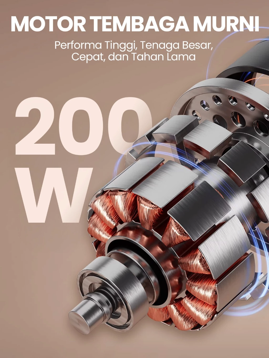 4. Motor Tembaga 200W dengan Proteksi Panas Otomatis