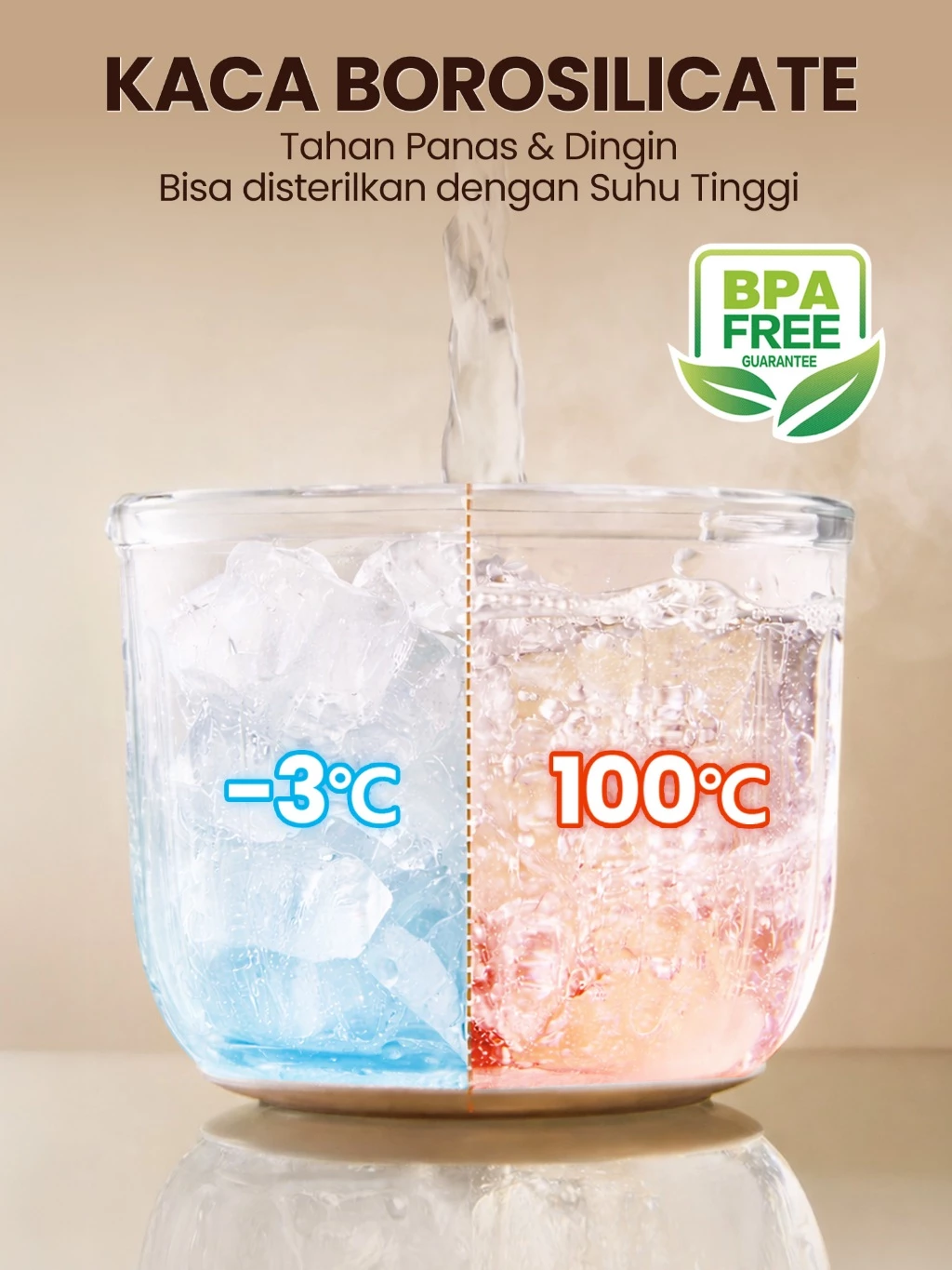 – Kaca borosilicate tahan panas & mudah dibersihkan